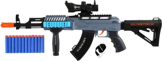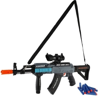 Samopal má realistický vzhľad inšpirovaný modernými puškami, ergonomické držanie a odnímateľný zásobník. Kombinácia odolného plastu a nízkej hmotnosti je skvelá pre menšie deti.