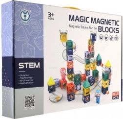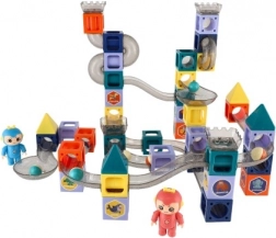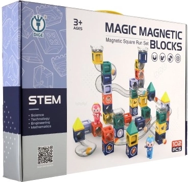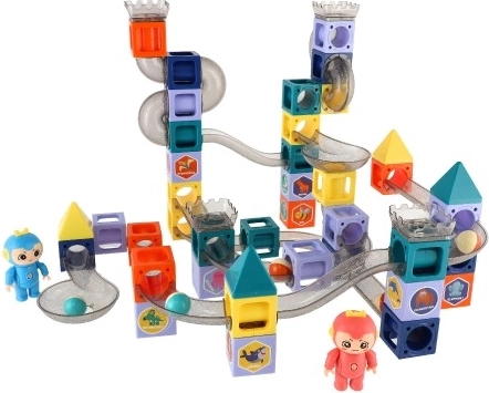 Táto farebná magnetická stavebnica spája zábavu a učenie. Vďaka pevným magnetickým spojom možno jednoducho skladať stabilné konštrukcie a vytvárať rozmanité guľôčkové trate. Deti si precvičia priestorovú predstavivosť, trpezlivosť aj plánovanie – a pritom ich stavenie aj sledovanie jazdy guľôčok nesmierne baví.