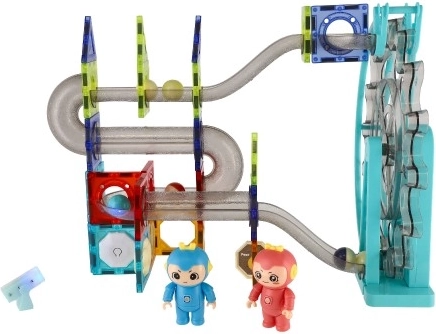 Táto farebná stavebnica umožňuje deťom ľahko spájať magnetické diely a vytvárať originálne dráhy pre guľôčky. Po dostavaní trasy prichádza napätie – prejdú guľôčky od štartu do cieľa? Na bezpečný dojazd dohliadnu aj rozkošné postavičky Nink a Wink. Integrované elektrické koleso funguje ako výťah pre guľôčky a pridáva efekty svetla aj hudby, ktoré možno podľa potreby vypnúť.