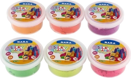 Piesok Nara Silky Sand je dokonalým prostriedkom pre kreatívne hry a rozvoj motorických zručností. Deti môžu formovať a tvarovať nekonečné množstvo tvarov, čo rozvíja ich predstavivosť a kreativitu. Každá súprava obsahuje šesť rôznych farieb pieskov a dve vykrajovátka pre ešte viac zábavy.