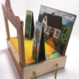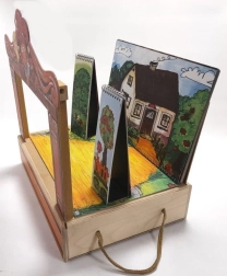 Gerlich MAXI bábkové divadlo je poctivo spracovaná sada pre malých aj veľkých rozprávačov. V pevnej drevenej krabici nájdete kompletnú scénu s oponou, proséniom a bočnými kulisami, vďaka ktorým vytvoríte pestré rozprávkové príbehy. Bábky z chránenej dielne sú drevené, obliekané do textilu a každá je originál – farebné detaily sa môžu líšiť.