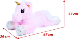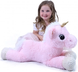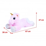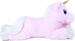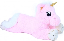 Prepracované detaily, ako zlatý roh, bodkované kopýtka a mäkkučká hriva a chvost, podčiarkujú jeho rozprávkový vzhľad. Veľký formát 70 cm ponúka dostatok priestoru na objatie a poskytuje deťom pocit istoty a pokoja pri oddychu.