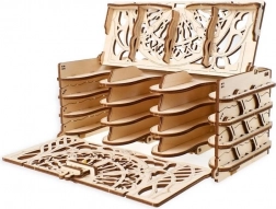 Premeňte organizáciu svojej kartovej zbierky na zábavný zážitok. Drevená kazeta UGEARS kombinuje funkčný dizajn, mechanickú eleganciu a remeselné spracovanie. Jednoduchým otočením zámku sa kazeta otvorí a plynulo rozloží do prehľadného „schodiska“, ktoré vám umožní rýchlo nájsť a triediť karty.