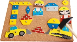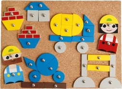 Zoznámte sa s zatloukacou hrou Stavenisko, ktorá je ideálna pre malých majstrov staviteľov od 3 rokov veku. Táto hra podporuje rozvoj jemnej motoriky, koncentrácie a kreativity prostredníctvom interaktívnej hry s korkovou doskou a drevenými tvarmi.