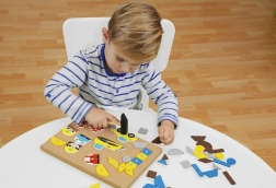 Táto hračka rozvíja detskú schopnosť tvoriť a sústrediť sa na zadané úlohy prostredníctvom zábavného hrania.