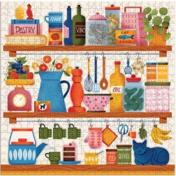 Puzzle znázorňuje detailnú ilustrovanú policu s kuchynskými potrebami, ktoré dodávajú skvelý vzhľad a pocit. Obsahuje 15 zábavných tvarovaných dielikov, ktoré sa ľahko skladajú. Je ideálne ako darček vďaka pevnému baleniu a krásnemu dizajnu.