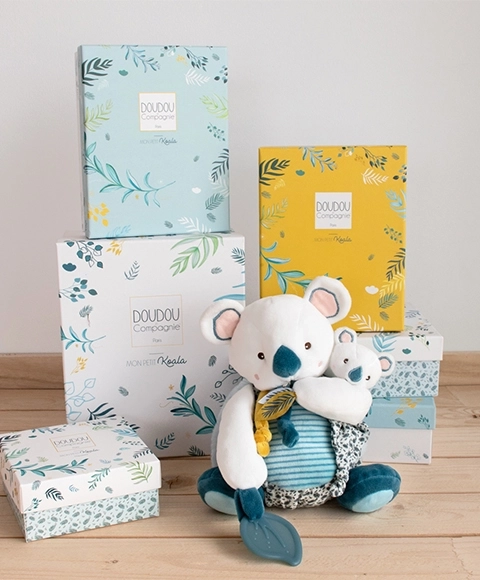 - Plyšová koala Yoca s bábätkom v darčekovej krabičke