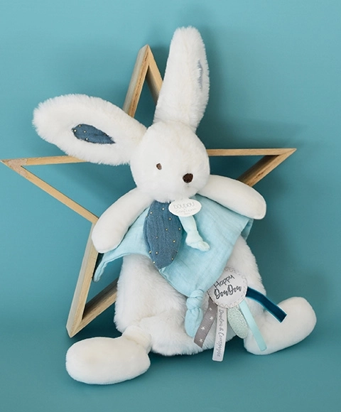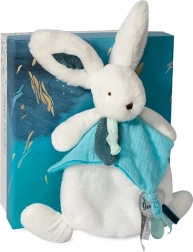 Táto darčeková sada značky Doudou prináša hebkého plyšového zajačika s muchláčikom, ktorý poteší bábätko aj rodičov. Štýlové prevedenie s jemnými stužkami a modernou modrou farbou z neho robí krásnu ozdobu detskej izbičky aj obľúbenú hračku na túlenie.