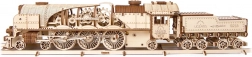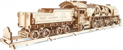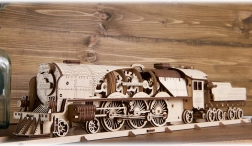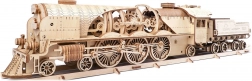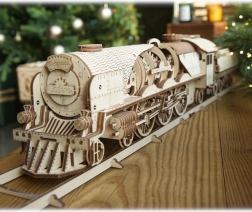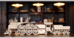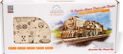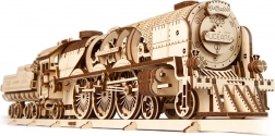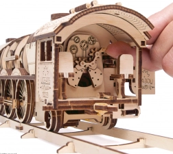 UGEARS V-Express je výnimočná drevená stavebnica pre náročných, ktorá spája čaro klasickej železnice s premyslenou mechanikou. Odhalený „plášť“ lokomotívy umožňuje sledovať chod prevodov, súkolesia a kľukového mechanizmu v akcii. Vďaka natahovaciemu motoru sa model skutočne rozbehne a ponúkne realistický zážitok z jazdy vrátane voľnobehu a spiatočky.
