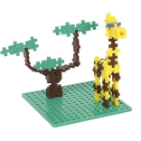 Stavajte ploché obrázky aj priestorové modely – napríklad žirafu a strom na podložke. Deti si pritom rozvíjajú priestorovú orientáciu a jemnú motoriku.