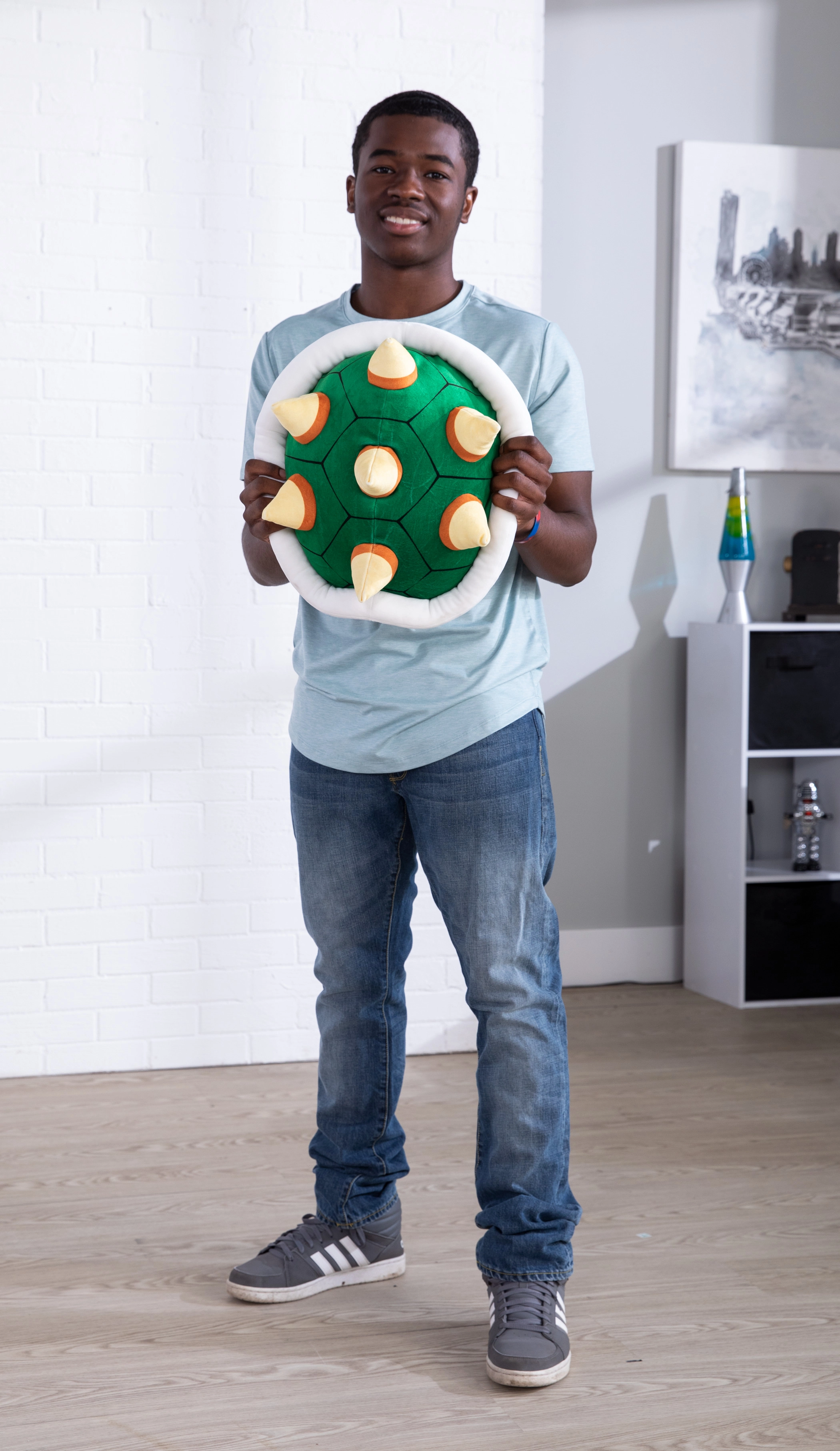 Tento originálny plyšový vankúš inšpirovaný ikonickým Bowserovým pancierom poteší každého fanúšika sveta Super Mario. Vďaka mäkkej výplni a hebkému povrchu je ideálny na gauč, do herného kútika aj do detskej izby.