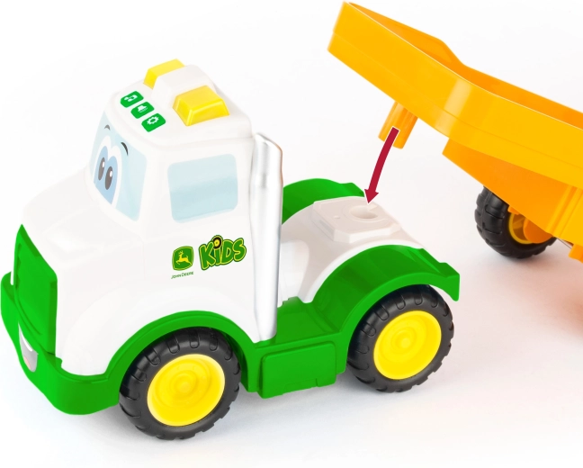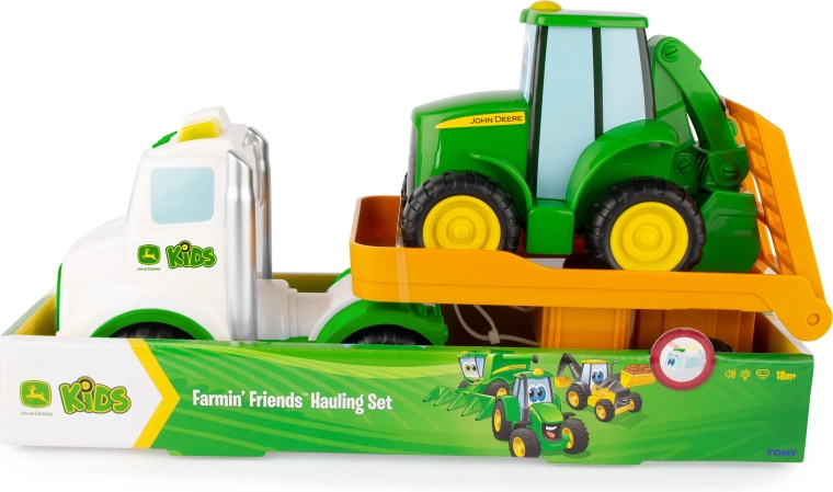 Hľadáte zábavnú hračku pre malých farmárov? John Deere traktor Johnny s tahačom (37 cm) prináša hodiny tvorivej hry. Vďaka zdvíhacej rampe možno traktor jednoducho naložiť na tahač a vyraziť za ďalším dobrodružstvom. Odolné prevedenie, jednoduché ovládanie a ikonický dizajn JOHN DEERE poteší deti aj rodičov.