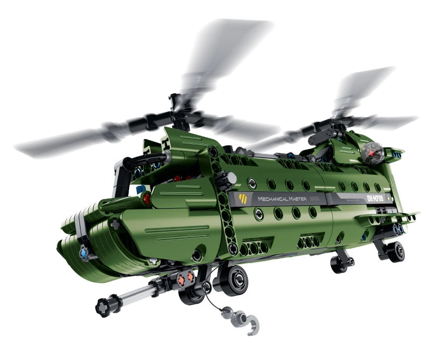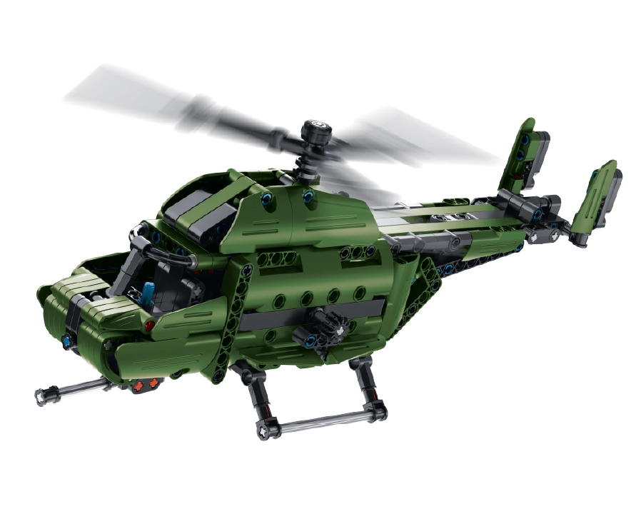 Model ponúka systém 2v1 – z jednej sady postavíte dve rôzne varianty vrtuľníka. Mechanické prvky zabezpečujú pohyb a funkčné časti, takže si užijete nielen stavanie, ale aj následnú hru. Podrobný návod uľahčí montáž krok za krokom.
