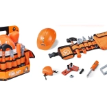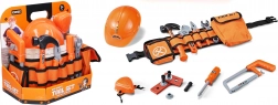 Praktická detská sada pre malých opravárov obsahuje všetko potrebné na bezpečné hranie a prvé „kutilské“ pokusy. Súčasťou je textilný opasok na pohodlné nosenie náradia, prilba a bohatá výbava: rúško, pílka, kladivko, kombinačky, hasák, skrutkovač, kľúč, 2 drievka, 3 skrutky a 3 matice.