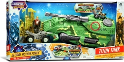 Akčný set The Corps prináša realistický tank Titan s dĺžkou 39 cm s bohatou výbavou pre dobrodružné misie. Užite si svetelné a zvukové efekty, celkovo 10 rôznych zvukov, a pripravenosť na hru vďaka 3× AA batériám v balení. Súčasťou je tank, štvorkolka, 2 vojaci a barikády pre ešte väčšiu porciu zábavy.