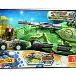 Objavte akčný set The Corps tank Titan s vojakmi, ktorý ponúka autentický zážitok z bojových scén. Veľký tank s dĺžkou 39 cm má výrazné detaily a funkcie, ktoré deti okamžite vtiahnu do hry. Vďaka svetelným a zvukovým efektom s 10 rôznymi zvukmi bude každá misia dynamická a napínavá.