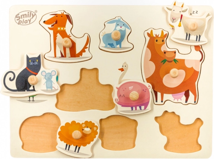 Objavte zábavné drevené puzzle pre najmenších s témou domácich zvierat. Vďaka praktickým úchytom na jednotlivých dielikoch a tvarovanej vkladacej doske sa deti ľahko naučia správne priraďovať tvary a farby. Sada obsahuje 6 pevných dielikov a podporuje jemnú motoriku, očnorukovú koordináciu aj sústredenie.