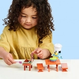 Mini sada Bluey Záhradné grilovanie prináša do detskej izby atmosféru rodinnej záhradnej oslavy. Figúrka s kuchárskou čiapkou, gril s doplnkami a piknikový stôl s lavicami podnietia deti k rozprávaniu príbehov a spoločným hrám.
