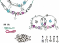Sada na výrobu náramkov a náhrdelníkov s príveskami poskytuje deťom možnosť vytvoriť si vlastné jedinečné šperky. Krásne, farebné a trblietavé náramky spolu s ladiacimi náhrdelníkmi sú skvelou ozdobou pre malé slečny.