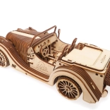 Štýlový roadster inšpirovaný veteránmi prináša jedinečný zážitok zo stavby aj z prevádzky. Model UGEARS sa skladá z laserom vyrezávaných dielikov, ktoré do seba presne zapadajú, a po zostavení ponúkne plynulý chod vďaka šikovným prevodom a gumičkovému pohonu. Všetko zvládnete bez kvapky lepidla – len s pomocou obrázkového návodu.