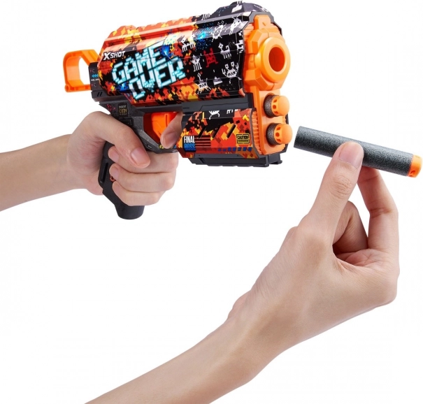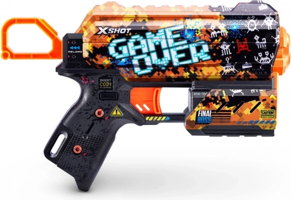 Vneste do bitiek štýl z videohier s pištoľou X-Shot Skins Flux v motíve Game Over. Vďaka najmodernejšej technológii potlače pôsobí blaster mimoriadne atraktívne, zatiaľ čo ergonomické tvary a ľahká konštrukcia zaisťujú pohodlné ovládanie aj pri dlhšej hre.