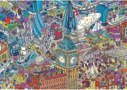 TREFL UFT (Unlimited Fit Technology) prináša revolúciu do sveta puzzle. Špeciálna raziaca technológia umožňuje napájanie viacerých motívov z rovnakej série, takže si sami určíte veľkosť a podobu výslednej koláže. Prepracovaný motív „Eye-Spy Time Travel: Londýn“ poteší každého milovníka Británie aj detailného skladania.