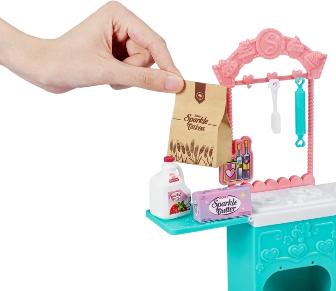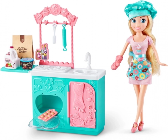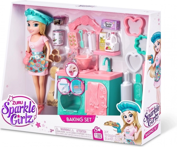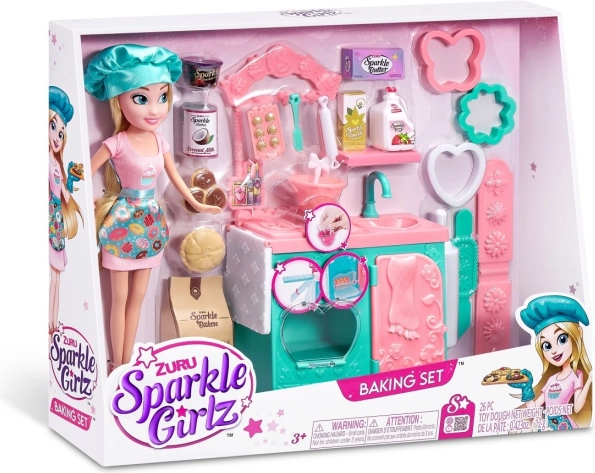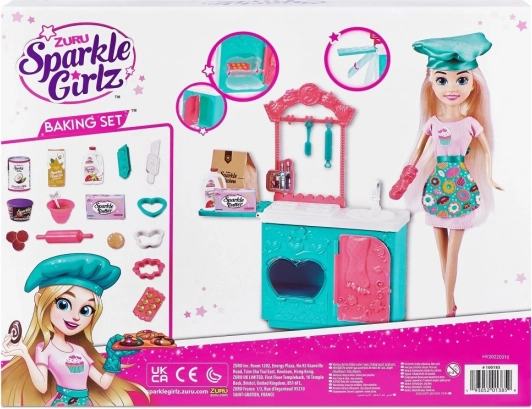 Set obsahuje potrebné prvky pre hru, vrátane malých hračkových potravín, misiek, špachtlí a formičiek, ktoré umožňujú realisticky napodobniť pečenie. Otvorte rúru, vložte do nej sušienky a predstierajte, že sa pečú! Vďaka výmenným odevom možno bábiku kombinovať s ďalšími postavičkami z rady Sparkle Girlz.