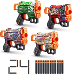 Vylaďte svoj štýl na bojisku vďaka technológii tlače X-SHOT SKINS. V sade nájdete dizajny Camo, Game Over, Scream a navyše exkluzívny skin Alpha Zone.