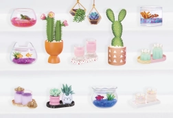 Objavte svet miniatúr s MGA's Mini Verse Make It Mini Lifestyle! Každá guľa skrýva prekvapenie a dodá vám všetko potrebné na vytvorenie realistických mini dekorácií – od mini akvárií s rybičkami po mini kaktusy so sáčkami zeminy. Po zostavení stačí nechať vytvrdnúť na UV svetle a máte hotový zberateľský kúsok na vystavenie.