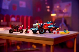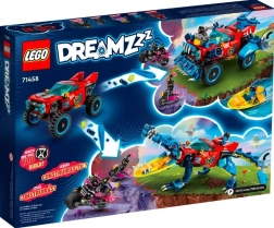 LEGO DREAMZzz Krokodílie auto (71458) inšpirované televíznym seriálom umožňuje deťom tvoriť úžasné stavby a zároveň sa ponoriť do dobrodružstiev. Deti môžu zažiť zábavu zo stavania vďaka možnosti zostaviť vozidlo dvoma rôznymi spôsobmi, či už ako krokodílie auto s pohyblivými končatinami a vystreľovačom diskov, alebo terénne vozidlo s rotujúcimi kolesami a odnímateľnou strechou.