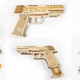 Model UGEARS Wolf-01 je detailná drevená replika pištole s gumičkovým pohonom, ktorú zložíte bez lepidla len pomocou presne vyrezaných dielov. Po zostavení získate funkčný mechanický model, ktorý spoľahlivo vystreľuje gumičky a ukáže vám v praxi, ako spolupracujú ozubené kolesá, spúšťový mechanizmus a pružnosť materiálov.