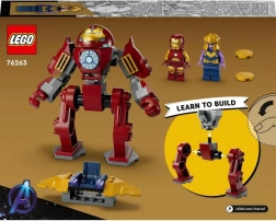 Založený na filme Marvel Avengers: Infinity War, tento set obsahuje superhrdinu Iron Mana s jeho Hulkbuster robotom a zloducha Thanosa s jeho vozidlom. Mecha Hulkbuster je plne polohovateľný a obsahuje miesto pre minifigúrku Iron Mana. Thanosovo vozidlo je vybavené diskatým vystreľovačom a sedadlom pre jeho minifigúrku. Použiteľné stavebné bloky a príbehový návod v sade pomáhajú deťom ľahko stavať a okamžite sa hrať. Intuitívna aplikácia LEGO Builder umožňuje deťom prezerať modely v 3D a sledovať svoje pokroky.