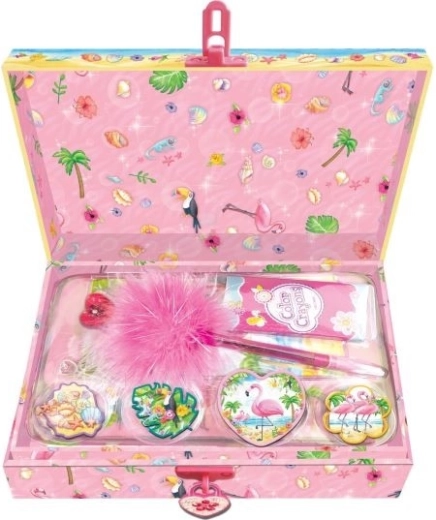 Všetko je krásne zabalené v ozdobnej krabici, ktorá sa dá zamknúť visiace zámkou, aby ste si mohli svoje tajomstvá udržať v bezpečí.