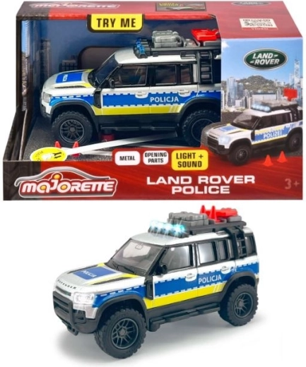 Majorette Grand Series: robustné vozidlá dostupné vo väčšom vydaní, policajné auto Grand Land Rover s kovovými dielmi plné zaujímavých funkcií v mierke 1:43, dĺžka 12,5 cm.