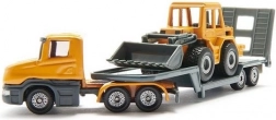 Špeciálna ochrana a gumové pneumatiky zabezpečujú pohodlnú a bezpečnú prepravu stroja. Sada obsahuje nakladač s pohyblivými časťami na gumových kolesách. Atraktívna hračka pre najmenších bude obohatením každej hry.
