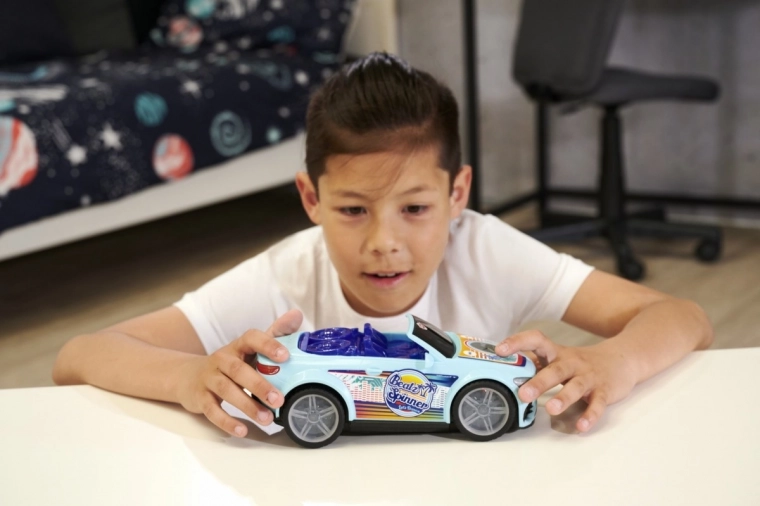 Zábavné interaktívne autíčko MERSEDES-BENZ Beat Spinner premení každú izbu na mini diskotéku. Po stlačení tlačidla sa roztočí, spustí farebné LED osvetlenie na kolesách aj vnútri kabíny a prehrá chytľavé popové melódie. Kompaktná dĺžka 23,5 cm, oficiálna licencia a jednoduché ovládanie robia z tejto hračky perfektný darček pre deti od 3 rokov.