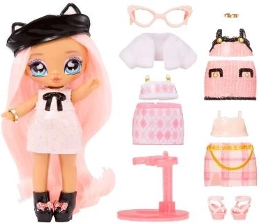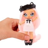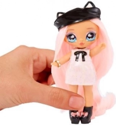 Mini bábika s ružovými vláskami, roztomilými doplnkami a výraznými očkami. Ideálna veľkosť do malej rúčky na každodenné hranie a zbieranie.