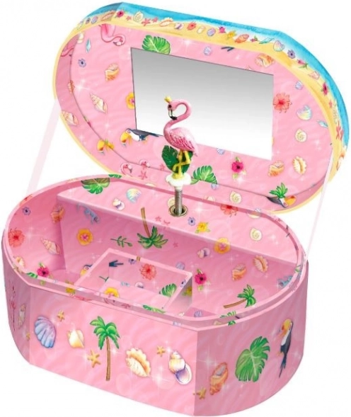 Hudobná skrinka hrá klasickú melódiu. Po otvorení sa figúrka roztočí. Keď melódia prestane hrať, hraciu skrinku stačí jednoducho natiahnuť. Funguje vďaka špeciálnemu mechanizmu a nevyžaduje batérie. Súčasťou je zrkadielko a priestor na uloženie drobností.