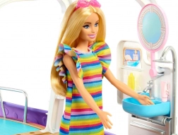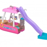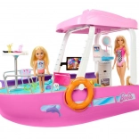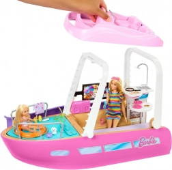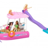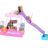 Táto štýlová loď s rozmermi približne 91 cm na šírku a 30 cm na výšku ponúka množstvo miesta pre bábiky a ich parťákov. Deti môžu riadiť loď na hornej palube, relaxovať na slnku a šmýkať sa po fialovej šmýkačke priamo do modrého bazénika. Odnímateľné horné poschodie sprístupní detailne spracovaný interiér pre jednoduché hranie.