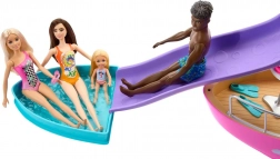 Dostaňte bábiky bezpečne do vody po širokej šmýkačke priamo do odnímateľného bazénika. Ideálne na letné príbehy, párty na palube aj osvieženie počas plavby.