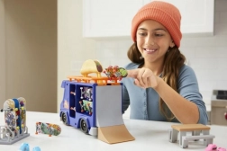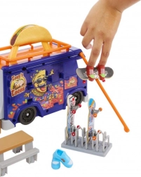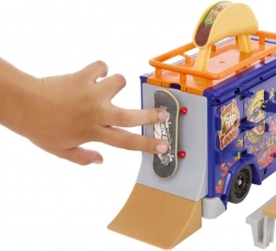 Pripojte sa k adrenalínu skateboardingu so sadou Taco skateboardová sada. Toto úžasné modré a oranžové nákladné auto s obrovským taco na streche umožňuje fantastické triky a slúži ako prenosný úložný priestor.