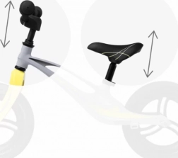 Blokácia riadenia obmedzuje uhol otočenia, protišmykové gripy chránia ruky a gumový chránič na riadidlách tlmí nárazy. Nastaviteľná výška sedla aj riadidiel rastie s dieťaťom.