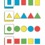 Pri hre so sadou Tvary a farby dieťa prikladá výstrižky na farebné dosky a priraďuje ich k zodpovedajúcim kartónovým figúrkam alebo zasúva figúrky do výrezov. Hračka ponúka mnoho úloh na spoznávanie tvarov a farieb prostredníctvom pozorovania a manuálneho experimentovania.