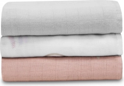Tri farebne zladené plienky s rozmerom 70 × 70 cm poslúžia na zavinovanie, pri dojčení, pri kŕmení aj ako podložka na prebaľovanie – doma aj na cestách.