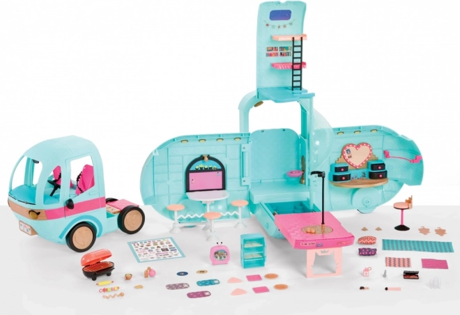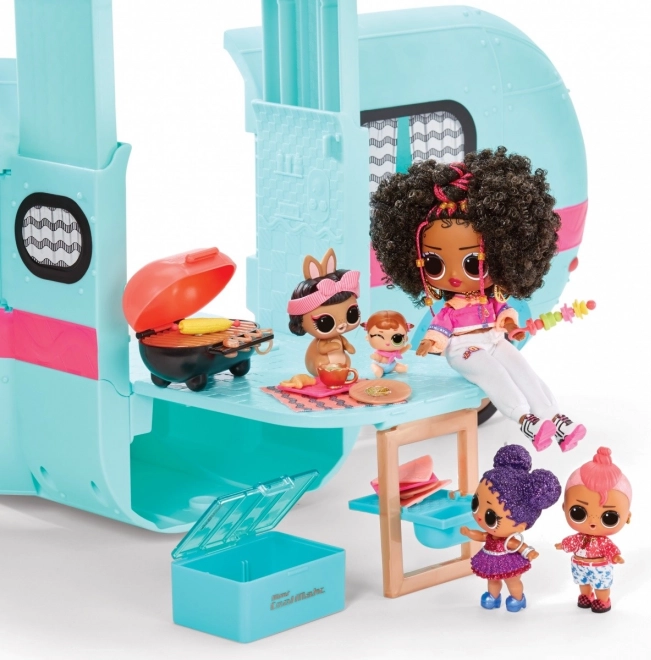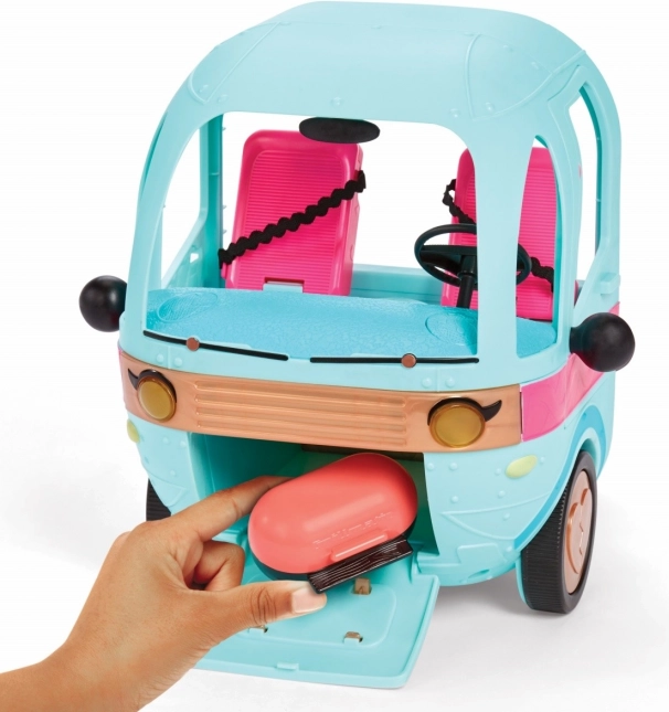 L.O.L. Surprise! Glam N' Go Camper je ten najúžasnejší dopravný prostriedok pre vaše bábiky L.O.L. Surprise, s ktorým môžu cestovať vo veľkom štýle. Karavan obsahuje viac než 50 prekvapení na rozbalenie, viac než 10 miest na stretávanie a zmestia sa doň módne bábiky LOL Surprise OMG aj bábiky LOL Surprise. Zadná časť karavanu sa otvára. Po skončení hrania je možné všetky doplnky a predmety uložiť dovnútra.