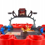 Zažite epické bitky s prispôsobiteľnou bojovou arénou Bakugan. Súčasťou je exkluzívny Dragonoid so špeciálnym útokom, XL ťažné lano, šikovné prekážky, podstavec aj držiak telefónu. Nechýbajú zberateľské karty a kód pre Roblox.