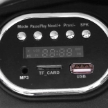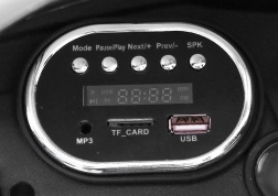 Rodičia ocenia diaľkový ovládač 2.4 GHz s 3 rýchlosťami a tlačidlom núdzového zastavenia STOP. Deti zas audio panel s MP3, USB, SD a AUX, vrátane vstavaných melódií a klaksónu na volante. Komfort zaisťuje sedadlo s bezpečnostnými pásmi a štyri tlmiče (2× vpredu, 2× vzadu).
