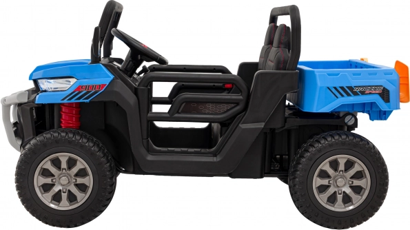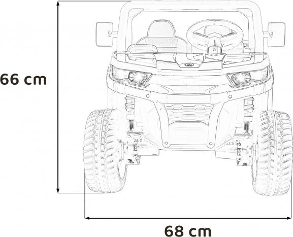 Objavte dobrodružstvo na záhrade aj na chodníku. Tento detský pick‑up kombinuje výkon 4x4, kvalitné spracovanie a praktické funkcie: priestranný kufor s elektricky zdvíhaným kiperom, otvárateľné zadné čelo a pohodlné dvojité sedadlo z eko kože so zabezpečením. Penové kolesá EVA tlmia nerovnosti a zabezpečujú tichú, priľnavú jazdu.