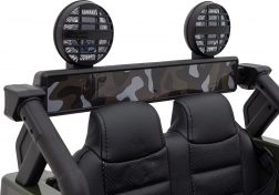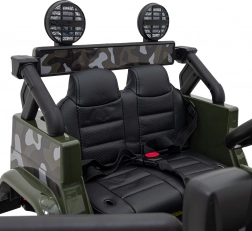 Interiér poteší čiernym sedadlom z eko kože s bezpečnostnými pásmi a funkčným prístrojovým panelom. Deti si užijú hudbu cez MP3, USB, AUX alebo Bluetooth, k dispozícii sú aj predinštalované melódie a tlačidlá zvukov na volante. O atraktívny vzhľad sa starajú predné, zadné aj horné LED svetlá a podsvietený štart s efektom zvuku motora.