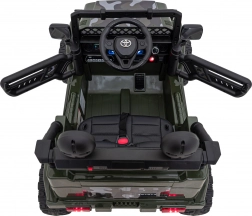 Štýlové detské elektrické autíčko Toyota FJ Cruiser v prevedení moro prináša realistickú jazdu vďaka pohonu 4x4, mäkkým EVA kolesám, svetelným LED efektom a bohatej audio výbave s Bluetooth. Bezpečnosť zabezpečujú pásy, plynulý štart a diaľkové ovládanie 2,4 GHz s núdzovým tlačidlom STOP.